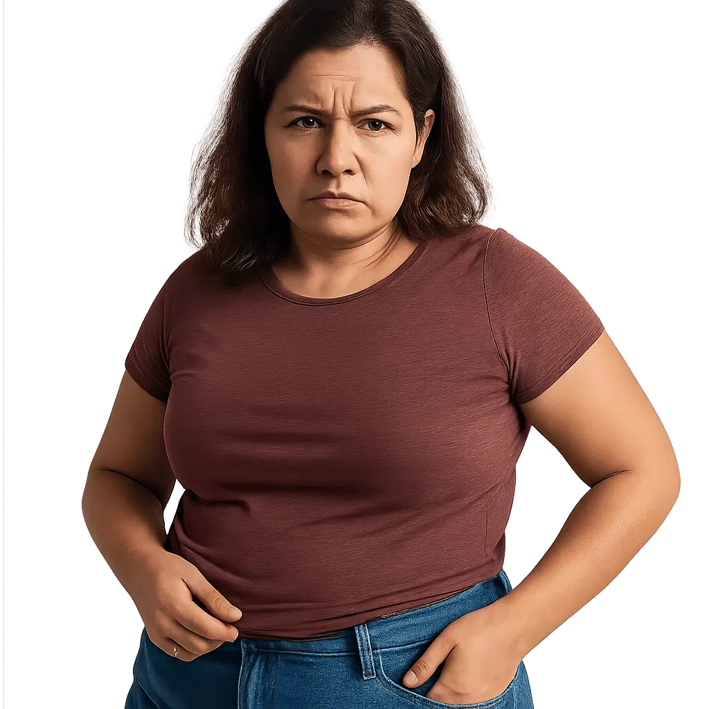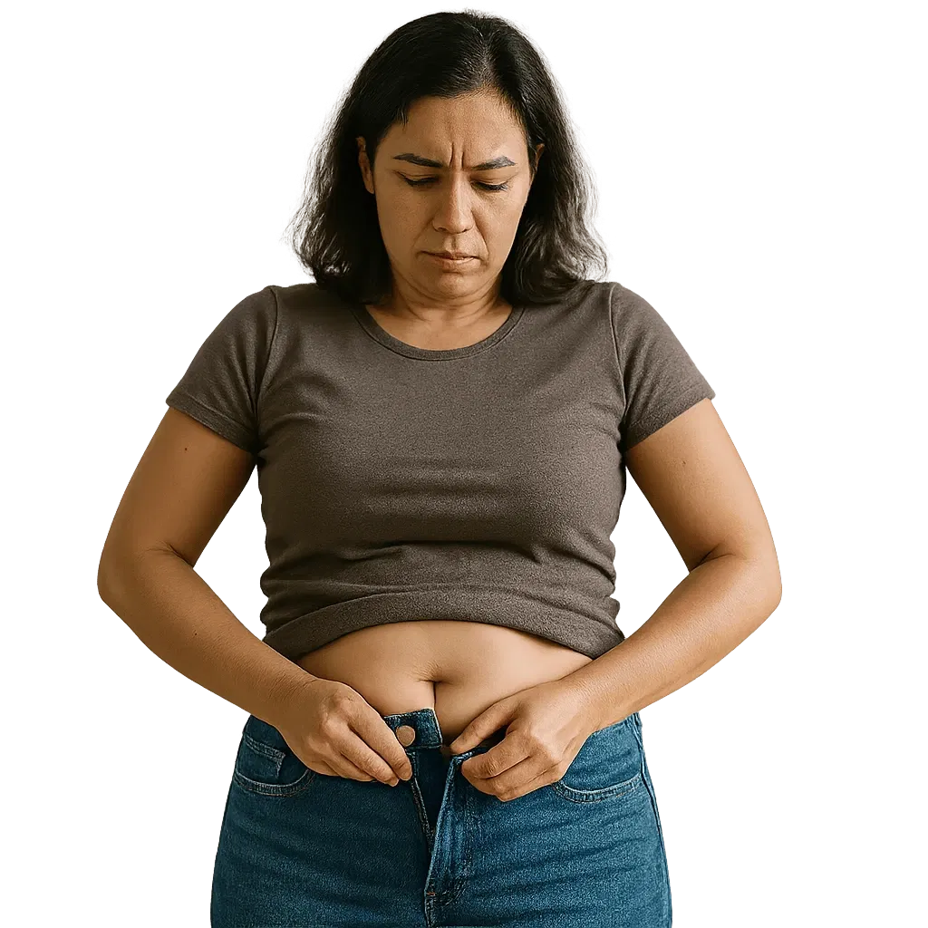 Acúmulo de gordura corporal. Risco de complicações como diabetes e hipertensão.